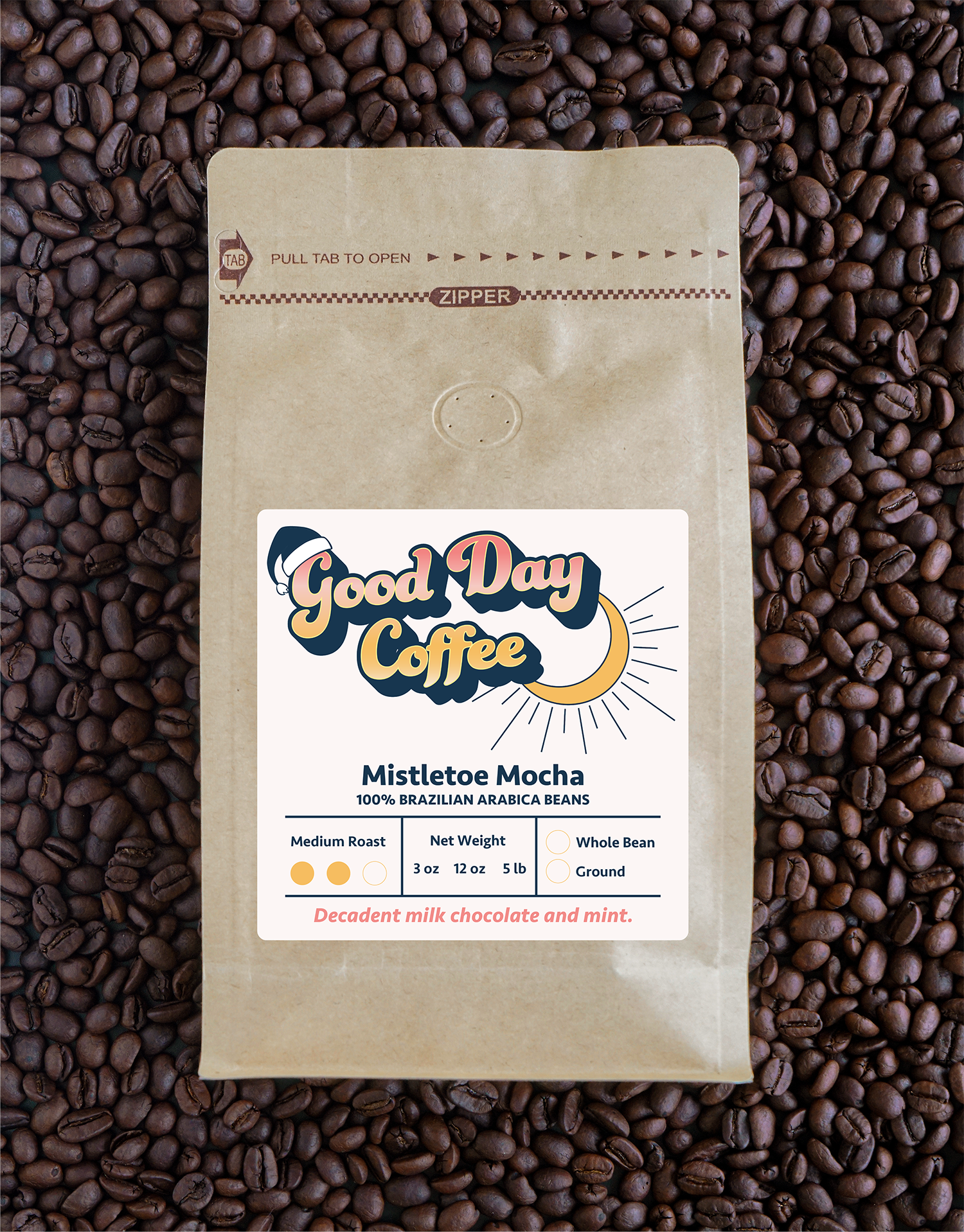 Made with Brazilian Arabica beans, Mistletoe Mocha is one of the more popular holiday flavored coffees. It has a bold coffee taste with a subtle milk chocolate and peppermint aroma. Everything about this coffee says, Happy Holidays!